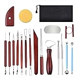 Blisstime 18PCS Clay Sculpting Tools, Basic Clay Pottery Carving Tool Kit with Wooden Handles and Tool Bag