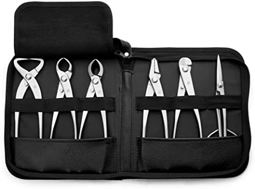 TianBonsai 6-PCS Bonsai Tool Set Including Concave Cutter Straight Edge Cutter Trunk Splitter Wire Cutter Bonsai Pliers And Bonsai Scissors Equip With Tool Bag