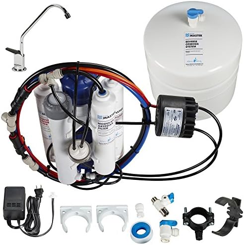 Home Master TMHP HydroPerfection Undersink Reverse Osmosis Water Filter System , WhiteHome Master HydroPerfection Undersink Reverse Osmosis System delivers exceptional water purity while also adding beneficial minerals that produce clean, great-tasting Mineral Water on Tap. The included permeate pump will reduce water waste by up to 80 percent while increasing water production by up to 50 percent. Home Master's innovative design eliminates the most common problems found in traditional RO systems -- canister filter housing leaks, slow flow rate, high water waste, service challenges, and slightly acidic water. What makes Home Master HydroPerfection a smarter choice? Clean, great-tasting water; a modular filter design; the power of UV light; easy-to-change filters; faster flow rate; and better water efficiency. Home Master HydroPerfection uses its nine stages of filtration, purification, sterilization, and enhancement to produce exceptionally clean water. It uses its sediment, iron, catalytic carbon and reverse osmosis purification process to remove up to 98 percent of iron, hydrogen sulfide, chloramines, chlorine, chemicals, dissolved solids, metals, and other harmful contaminates from the water. Also, the type of dissolved iron commonly found in well water will destroy the reverse osmosis membrane without the IRON filter protecting it. The Home Master's superior pre-iron filter, which contains an advanced redox media KDF85, removes dissolved iron from the water. Additionally, the mixed media prefilter uses powerful catalytic carbon to remove chemicals like chloramines, herbicides and pesticides. The advanced ultraviolet light sterilization chamber is always on guard and safely destroys 99.9 percent of germs, viruses, and bacteria. This results in exceptionally pure, great tasting water. This package contains an assembled purification unit that includes RO membrane and filters, storage tank, 3/8-inch feed-water adapter with shut off, chrome RO faucet, RO adapter, 110v power supply, drain saddle, and instructions.Home Master ISetTMA8 Artesian And HydroGardener Replacement Water Filter Change Set, WhiteReplacement filter change set for: Tap Master Artesian, Tap Master Artesian Full Contact, Home Master Artesian, Home Master Artesian Full Contact, HydroGardener. Certified to NSF standard 42 for chlorine reduction and Class V particulate reduction; filters can remove up to 98-percent of chemicals, including VOCs, TOCs, chlorine, and others that create foul tastes and odors. Filter set lifecycle: 2,500-Gallon or 1 year or as needed. In the Box: One 5 micron spun poly, high holding depth sediment water filter. One 5 micron coconut shell granular activated carbon water filter. One 5 micron Artesian remineralization and coconut shell granular activated carbon water filter. MADE IN THE USA. Certified to NSF standard 42 for Class I chlorine reduction & Class V particulate reduction can remove up to 95% of chemicals, including VOCs, TOCs, chlorine, and others that create foul tastes and odors. -- Quick connect fittings; 10L x 2W.
