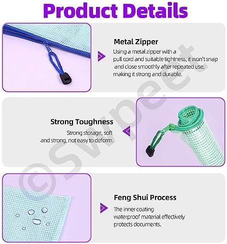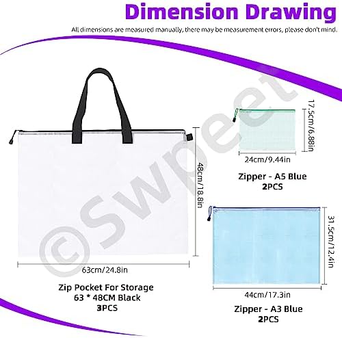 💯 Swpeet 7Pcs 3 Sizes A3 A5 19 x 25 Inch Storage Bag Art Portfolio Bags with Zipper and Handle Assortment Kit, Mesh Folder Organizers Art Portfolio Bags Posters Storage BagTransparent Bag for Large Posters Artworks 💯 WHY CHOOSE US? 💫 1, Waterproof, Moistureproof & Dustproof 💥 Our art bags are made of waterproof vinyl mesh cloth, protecting your pieces against damage on rainy & damp days and also can well keep your items far away from the dust. 💫 2, Art Portfolio Bag-3Durable & easy to carry 💥 Made of thickened plastic and high-quality 420D ballistic nylon with reinforced stitching and neat nylon hemming to make the bag more durable. Double shoulder straps design, convenient to carry your works to anywhere The bag is foldable to be stored easily when not in use. 💫 3, Art Portfolio Bag-4Perfect Size for Artwork 💥 Measuring 19x25 inches, the art bag is large enough for different-sized art projects and organized posters, bulletin board items, and classroom projects, as well as to make a bunch of small stuff well organized. 💫 4, Art Portfolio Bag-5Transparent, easy to mark and clean 💥 The Clear storage bag enables you easy to check what’s in the bag and find what you need. When not in use, you can fold it up in small size and put it in a drawer. 💫 5, Great for storing diamond paintings 💥 Keeps diamond painting of many sizes. You can see what's in it and keep dust off paintings, keeps them safe from every day dirt..plan to buy more. 💯 Specifications: 💥 Material: PVC, Plastic 💥 Color: Blue; Green; White 💥 Shape: Rectangular 💥 Size: 25x19 inch, 17.3 x 13 inch, 10 x 6.7 inch 💯 Package Included: 💥 3Pcs ----------- White 19 x 25 Inch Storage Bag with Zipper 💥 2Pcs ----------- A3 Blue Storage Bag with Zipper 💥 2Pcs ----------- A4 Green Storage Bag with Zipper 💥 Intotal 7Pcs