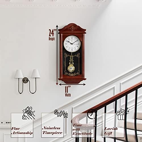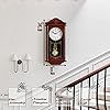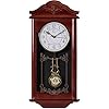 Large Vintage Grandfather Wood- Looking Plastic Pendulum Wall Clock for Living Room, Kitchen, or Dining Room, Large White (Brown)