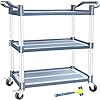 AQNIEGEP Utility Cart with Wheels, 510lbs Heavy-Duty Food Kitchen Cart & Rolling Service Cart for Restaurant Commercial Office, Lockable Wheels & Tool-Free Assembly, 3-Tier, Grey