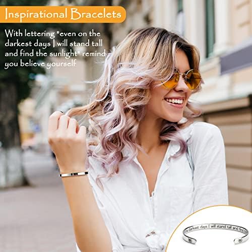 - [An Unforgettable Unboxing]:This womens gifts is an exclusive! 39 x59 inches sunflower blanket with inspiring text-“SOMETIMES YOU FORGET THAT YOU'RE AWESOME SO THIS IS YOUR REMINDER” the 20 oz insulated stainless steel tumbler with the funny quote "SENDING YOU SUNSHINE RAINBOWS"; soft fuzzy socks, the inside of the inspirational bracelet is stamped with secret message "Even on the darkest days I will stand tall and find the sunlight" remind you believe yourself