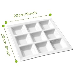 Cinf 2Pack Divided Plates rectangular Ceramic 9 Compartments Sauce Dishes Serving Saucers Quadrant Shaped Dinner Salad Tray Snacks