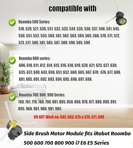 Side Brush Motor Module for iRobot Roomba 500/600/700/800/900 i3 i7 e5 e6 e7 530 560 570 620 650 694 780 900 860 870 880 890 960 980 Series, Vacuum Cleaner Edge Sweeping Brush Replacement Parts