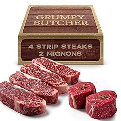 Grumpy Butcher 6 Steaks Sampler Set Gift Box: 2 Large Filet Mignon Steak & 4 New York Strip Steaks - Prime Steakhouse Quality - Gourmet Food Gifts Packages Specials Carne Asada