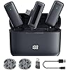 Micrófonos Inalámbricos Duales para iPhone Este conjunto de micrófonos lavaliere inalámbricos duales incorpora un chip de reducción de ruido, tecnología de sincronización automática en tiempo real y transmisión de señal de 2.4G con una latencia súper baja (0.008s), la captación del sonido sigue la imagen en tiempo real. El micrófono inalámbrico de lapel puede manejar fácilmente diversos entornos ruidosos y restaurar verdaderamente las voces humanas.