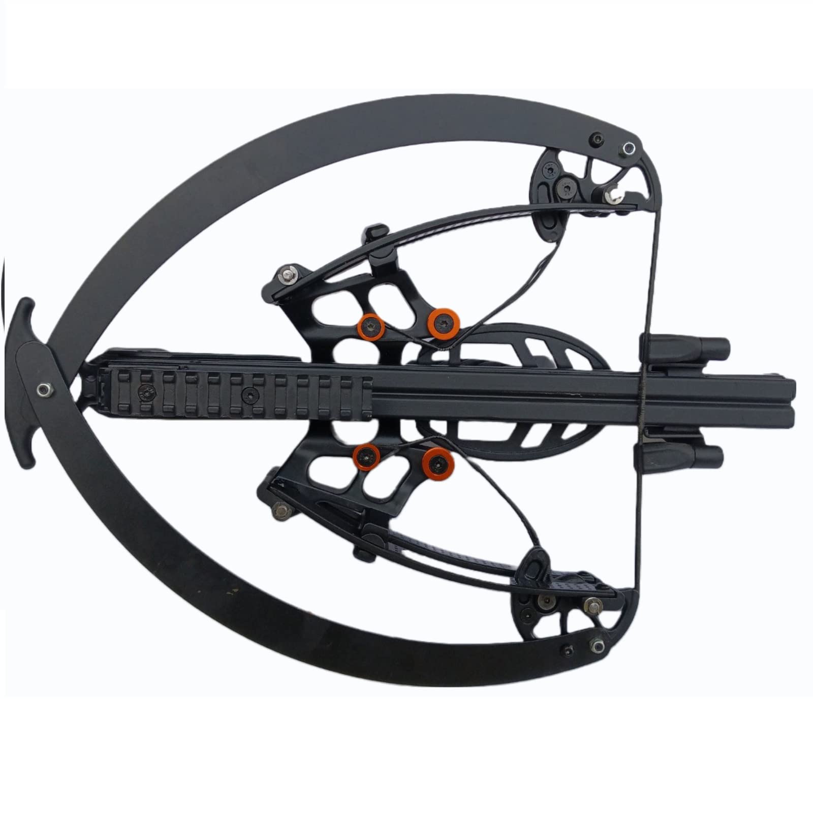 Outfitted with a red/green dot sight Quick & Easy Nocks - An innovative, integrated crank system brings the mini crossbow pistol's draw weight down from 150 lbs to 50 lbs. This makes cocking a lot easier and less stressful on the hands. An Exceptional Hunting Crossbow - Fast, small, and powerful, this crossbow is an excellent choice for hunters. It can effectively shoot down small to medium size game as well as a whitetail deer and hogs. Superb Maneuverability - Features a narrow limb design that measures 8.5" when cocked for a slim and compact build. The aluminum body is lightweight so you can move with ease and confidence in the field, and tight spaces like a ground blind, tree stand, saddle setup, or even a canoe. Enhance Your Accuracy - This hand crossbow features a 120° forward-backward movable foregrip for improved control during use. The 22mm Picatinny rail accommodates most types of sights and scopes.