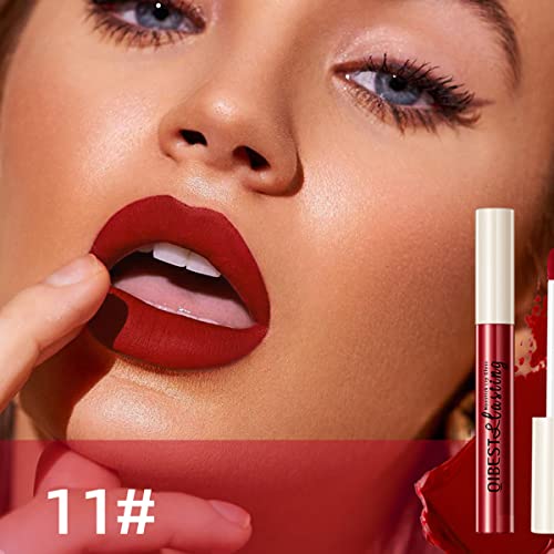 12Pcs Matte Liquid Lipstick Set, Dark Bright Red 24-hour Lip Gloss Kit Long-Lasting Waterproof Lip Stain Non-Stick Cup Not Lipgloss Set for Women