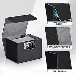 Premium Quality: ZLCA mtg card deck box has two-layer construction, the outer layer that is plasticized waterproof PU leather material, and the inner layer has a soft microfiber material to protect the cards inside; It protects you from this deck High Capacity: Compared with the traditional plastic card box, the durable leather card deck box gets an upgrade, and offers more room for your cards; it can hold up to 100+ double-sleeved cards, 120+ single-sleeved cards, or 220+ sleeveless cards Strong Magnet Design: 8 powerful magnets keep the card deck case secure during transport; Even when fully loaded and turned upside down, the card holder case stays tightly closed at all times, no need to worry about losing your precious cards U-shape Design: The box features a double-sided, wide-mouth U-shaped design; Even if the box is full of cards, you will be able to easily remove them all at once; The just-right design allows you to put and take cards with ease and without hindrance Multi Use: Suitable for a variety of TCGs, CCGs, LCGs & other collectible cards; Compatible with Magic The Gathering MTG, YuGiOh!, Cardfight!! Vanguard, Duel Masters, Panini football cards and many more