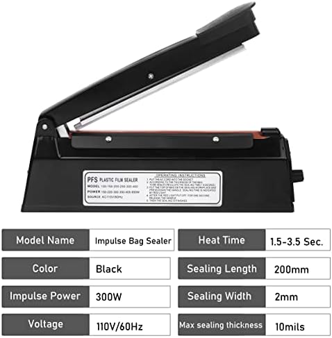 8inch Impulse Heat Sealer,Manual Poly Bag Heat Sealer Sealing Machine Heat Seal Closer for Plastic Bags PE PP Bags (Black)