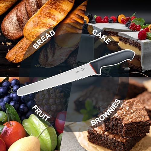 - DELFINA BREAD KNIFE makes quick work and cuts smoothly and evenly, very easy to maneuver.The good textured TPE handle is safe and won't slip.With the attached professional KNIFE EDGE GUARD to help you store easily and more safer.