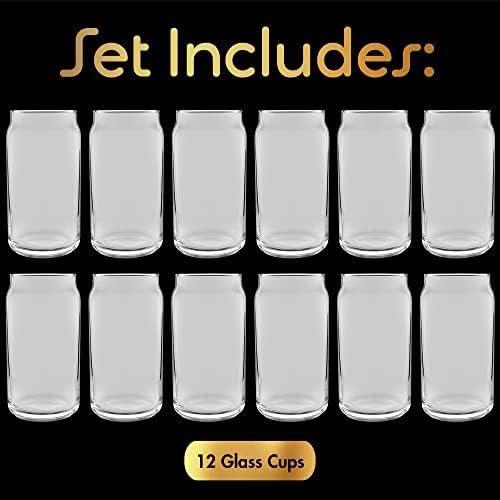 16 oz Can Shaped Glass Cups, Set of 12 Beer Can Glasses, Aesthetic Soda Can Cup Clear Glass Tumbler Beer Glasses, Cute Cups Tall Cocktail Drinkware, Cool Drinking Glasses for Kitchen, Modern Glassware