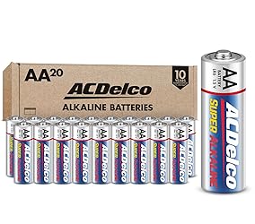 - ACDelco 20-Count AA Batteries, Maximum Power Super Alkaline Battery, 10-Year Shelf Life ACDelco AA Super Alkaline Batteries are equipped with advanced technology you can count on. ACDelco alkaline batteries perform better than the competition in high-drain and super high-drain devices, and they provide consistent discharge performance. ACDelco alkaline batteries are designed for long shelf-life with stainless steel pre-coating that prevents leakage and advanced ingredient formulation that helps maintain power over time. This pack includes 20 AA batteries great for a variety of household devices, including clocks, remote controls, and toys. The 1.5-volt batteries contain no mercury or cadmium, making them a smart choice for your family and for the environment. A trusted national brand, ACDelco offers a wide variety of batteries you can count on, including alkaline batteries, lithium coin cell batteries, rechargeable batteries, and car batteries. ACDelco 48-Count AAA Batteries, Maximum Power Super Alkaline Battery, 10-Year Shelf Life ACDelco AAA Super Alkaline Batteries are equipped with advanced technology you can count on. ACDelco alkaline batteries perform better than the competition in high-drain and super high-drain devices, and they provide consistent discharge performance. ACDelco alkaline batteries are designed for long shelf-life with stainless steel pre-coating that prevents leakage and advanced ingredient formulation that helps maintain power over time. This pack includes 48 AAA batteries great for a variety of household devices, including clocks, remote controls, and toys. The 1.5-volt batteries contain no mercury or cadmium, making them a smart choice for your family and for the environment. A trusted national brand, ACDelco offers a wide variety of batteries you can count on, including alkaline batteries, lithium coin cell batteries, rechargeable batteries, and car batteries.