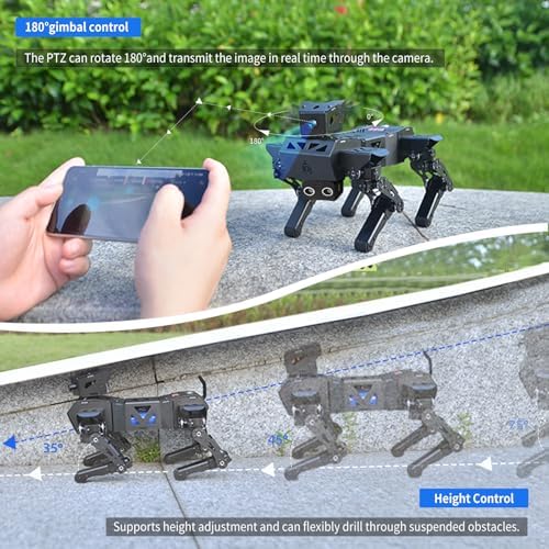 - Professional hardware: The robot dog adopts a high-precision aluminum alloy shell with a solid structure, equipped with a 12 DOF servo and a 1 DOF camera, and four-legged wear-resistant feet. Based on inverse kinematics, it can flexibly complete a variety of bionic poses and actions, helping you explore, learn and have fun. It is the qualified quadruped robot dog that you dream of.