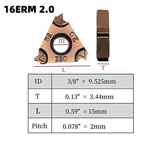 10Pcs Lathe Threading Inserts 16ERM 2.0 External Threading Insert Carbide Inserts for External Thread/Internal Thread Turning Tool Holders for for Stainless Steel and Iron