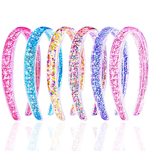 - 【Comfortable to wear】Glitter headbands for girls have medium width and are made of soft transparent plastic material. It’s very lightweight, so the weight doesn’t become too much over time. They are not too tight and are comfortable to wear all day. They have little teeth on the inside that keeps them in place, and the band is on the thicker side so they won't slide off easily. The comb teeth are small and will not press into the scalp and cause discomfort.