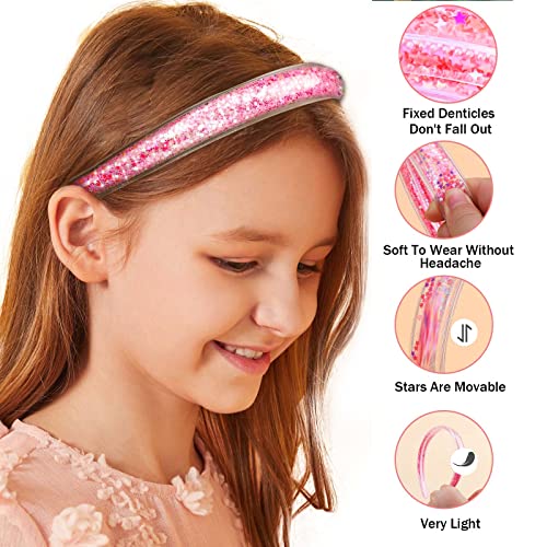 Glitter Headband for Girls,6 PCS Glitter Kids Headbands for Ages 4-12 Sparkly Head Bands for Girls Hair,Little Girl Hair Accessories(Stars&Butterfly)