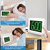Easy to Read - 3 inch huge LED Time Display against a nice large looking black backlit screen, even the elderly and the dementia patients can easily recognize the time. 24 hours Constantly lit up the LED Digital, without any operation, easy to read day and night. No Messy Cords - The LED digital alarm clock is battery operated (NOT electric plug-in with battery back-up), no messy cords, can be used anywhere you want. Alkaline D Cell Batteries ONLY. 2 PCS totally fresh batteries will support the alarm clock going to work for more than 12 months. Table-top/Wall-mounted -The clock with two unfold stand legs on the back, you can use it as a desk clock, table clock, bedside clock and nightstand clock. The clock has 3 wall-mounting hang holes, you also use it as a small wall clock. A modern decoration LED digital clock, clock for bedroom, clock for kitchen,clock for living room or clock for bathroom. Adjustable Brightness & Auto Night Mode - The digital alarm clock provides 3-level brightness, adjust by manual or auto to a comfortable brightness. The LED light will automatically dim during 8pm~6am your sleep time to protect your eyes at night and save energy. No blinding lights or any annoying sounds disturb your sleep, create an peaceful environment for sleep. High Accuracy & Daily Alarm - We understand that you are always need a clock with accurate time display and works well even after several years. Accuracy of the clock is less than ±30 seconds per month. The alarms' volume will be gradually increased and up to 2 minute. You will not miss your important affairs.