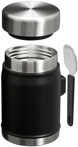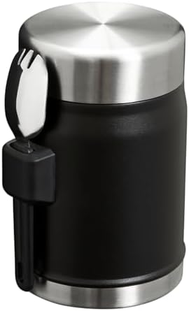 Stanley Classic Food Jar and Spork 14 oz | Vacuum Insulated Thermos Food Container | Wide Mouth Screw On Lid | Packable for Travel | Stainless Steel with Leakproof Lid | BPA-Free | Black 2.0