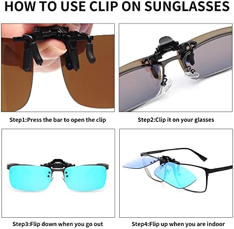 JM Polarized Clip on Sunglasses Frameless Flip Up Lens for Prescription Glasses Mirror Blue