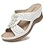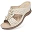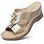 TEMOFON Womens Wedge Sandals Leather: Dressy Sandal, Rubber Sole, Comfortable Walking, Casual Slip on Summer Shoes, Size 5-11