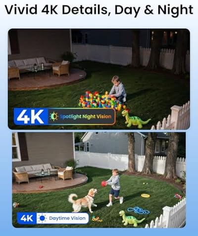 • Visión en Color de 4K 8MP Día y Noche: La cámara de seguridad con batería ha sido actualizada a una definición ultra alta de 4K 8MP, proporcionando una experiencia visual sin igual. El foco de movimiento incorporado ayuda a ver cada importante detalle a color incluso en la noche.