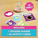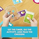 - A Hot-Potato kids game with jumping, laughing, and lots of animal noises! (And secretly…a little bit of screen free active play) This game gets you on your feet and into a silly mood. Shake the Chicken to reveal your activity, then quickly perform it before passing the Chicken Shaker to the next player. Don’t get caught holding the Chicken when the timer goes off! This game is fast, funny and it’s different every time. Plus, everyone has an equal chance to win…especially the little ones! Perfect for family game night or encouraging groups of kids to play together. You’ll laugh your butt off!
