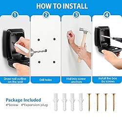 【LARGE CAPACITY】The upgrade extra large key lockbox is with External size: 11.5 x 8.5 x 5.5 cm / 4.53 x 3.35 x 2.17 (H x W x D). Internal Dimensions: 11 x 8 x 3 cm / 4.33 x 3.15 x 1.18 (H x W x D). , which provide ample, highly secure internal storage for your valuables. The Key Safe box outdoor can hold 5-8 medium sized house keys, access cards, car keys and other small items. With this secure key lockbox, there is no need to worry about your keys hidden under the carpet being discovered. 【HIGHER SECURITY】This wall mount key lock box push button is made with a new upgraded 12-digit button, the 9-digit key combination is more secure and harder to crack than the traditional 4-digit combination. Furthermore, it gives you the option to reset the combination at any time. The key lockbox for keys is made from a high strength zinc alloy body and hardened steel shackles to keep your keys safe. 【STURDY】The outdoor key lockbox for keys is made of heavy-duty PVC, aluminum alloy and steel locking mechanism, which offers extra resistance for the key lockbox wall mounted to hammering, sawing and prying. AMIR combination Key storage locks box help you save time and protect your belongings with no risk of loss or theft. 【RAINPROOF, DUSTPROOF, WEATHERPROOF COVER】The key lockbox for keys outside is equipped with a black cover, 【WIDE APPLICATION】It’s a great value key lockbox with code for indoor and outdoor use, suitable for storage of keys, cards and jewelry, especially fit for fitness enthusiasts, travel enthusiasts, home rental host, care takers, home workers, roommates, ideal to share access to families and roommates. This high security lock box will be a wonderful gift for your family or friends.