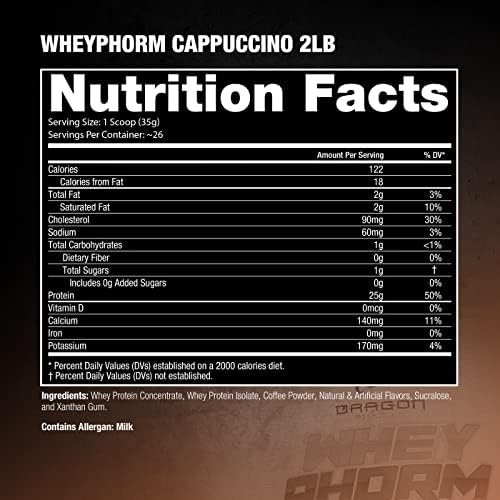 DRAGON PHARMA Whey Protein Blend, Fast Absorption, Gluten Free, 100% Whey Protein, WheyPhorm, Maximize Recovery, Great Tasting, 25 Grams of Protein (26 Servings, Cappuccino)