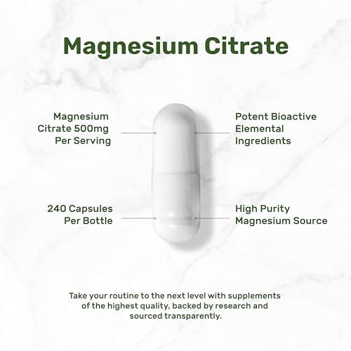 SUPLEMENTO DE OFERTAS Citrato de Magnesio 500mg, 240 Cápsulas | Mineral Purificado de Alta Absorción – Apoyo para Músculos, Corazón y Sistema Digestivo – Una al Día, No OGM