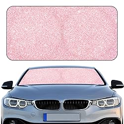 Windshield Sun Shade Foldable Car Front Window Covers for Car Accessories Sun Heat UV Rays Visor Protector Protection for Universal Cars SUV Truck(Pink Sequins)