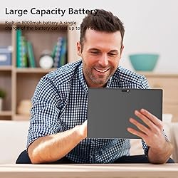 - 【Memoria de 1TB y Batería de Gran Capacidad】La tableta Android viene con 32GB de almacenamiento incorporado y hasta 1024GB de almacenamiento expandible con tarjeta microSD para aún más espacio. Además, la batería incorporada de 6000mAh puede usarse durante mucho tiempo. Puedes descargar muchas películas, libros electrónicos y música. Una sola carga de la batería puede durar hasta 12 horas, lo que la convierte en una tableta atractiva.