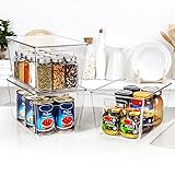 ✅Functional Storage for Any Space: You can use these pantry bins for various things throughout your home to organize and make your life easier. They are fit to pantry organization,ideal for cabinet, kitchen, refrigerator, bathroom, sink, bedroom and other scenes.The clear organizing bins to store drinks, snacks, canned goods, meat body wash, face wash, cleaning supplies and daily necessities. ✅Clear View and Stackable: The plastic storage bins are clear,so you can see what you want without having to take the whole bin out of the pantry. It will effectively save space of the pantry by stacking vertical storage when use the lids. Also, these stackable bins can be stacked to maximize space when not in use. Organzed stuffs with these containers to make your home neat. ✅Sturdy Material: Made of premium BPA free durable polyethylene material,A storage bin can bear 8kg,the large storage bins are strong enough to support the weight of full bottles and cans,and other items.You can stack other items on the storage bins at will, which plan storage space reasonably. ✅Easy to Carry with Built-Handles: The bins built with handles for easy pulling, it make sure that you can select what you need from plastic bins. Besides, it can be easy to transport from place to place. Organize all of your kitchen essentials to make organizing and everyday living with ease, creating a clean and organized home. ✅Cleaning Instructions:The temperature range is -20°~ 140°F. Please clean these pantry organizers by hand only with mild soap and warm water. These storage bins are NOT dishwasher safe, please do not place in dishwasher. The size of each kitchen cabinet organizer is: 11 "L x 7.5" W x 6 "H