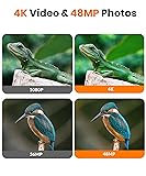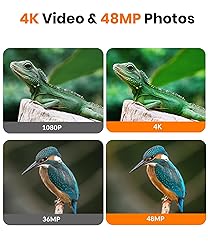 Ultra-Sharp Resolution: This Trail camera offers HD 4K audio video and 48 megapixel images, allowing you to get up close and personal with the wildlife world and capture more detail with crisp, high-quality photos and videos Clear Night Vision Shooting:The game camera is equipped with non-illuminated infrared LEDs that can capture clear black and white night images within 98 feet without disturbing the animals 130°Wide Angle & Concealment: This outdoor game camera has a 130-degree wide-angle lens, which can monitor and shoot a wide range of fauna, with a broader field of view. Camouflage appearance design, can make the camera better can be hidden in the forest, not to disturb the animals Long Distance Fast Trigger: Wildlife camera trigger time of only 0.05-0.3S, PIR distance of up to 1-98 FT,Once the moving target enters the PIR scanning range, it will trigger the camera to take pictures as fast as possible, so you won't miss any exciting moments IP66-Waterproof & Long Battery Life: The deer cameras has a long working time of 6 months and IP66 waterproof performance, so you can shoot outdoors for a long time without the need to change the battery frequently.At the same time, it can also withstand various harsh weather and outdoor environments