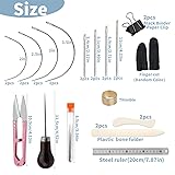 Bookbinding Tools Set Includes: 4 rolls of waxed thread, 4 bone folders, 1 gourd awl, 1 steel ruler, 8 pointed hand sewing needles, 4 size curved needles 2 each, 1 needle bottle, 2 black binder paper clips, 1 thimble, 2 finger cots, 1 scissors. Flexible and Useful: There are 4 rolls of waxed thread for book edge binding, colors are various and universal. There are 4 sizes of hand sewing needles for sewing, curved needles for edge stitching, and awl for punching, clips for fixing, making it easier and perfect to finish book binding by hand. Premium Bone Folder: The binding set includes bone clips with both pointed and round tips, providing precise and flexible control when folding, scoring, creasing, smoothing, polishing and entering hard-to-reach corners to meet various needs. Scoring Tool Advantage: The bone folder crease is made of plastic bone with no sharp edges and a smooth finish to help prevent damage to delicate surfaces or fabrics, making it perfect for use in any office or arts and crafts room. Wide Application -- This plastic fold and score tool is incredibly versatile and can be used for DIY handmade books or books repairing, sewing, scrapbooking, card making, DIY crafting projects, handmade books, bookbinding, leather craft, and other paper crafts.