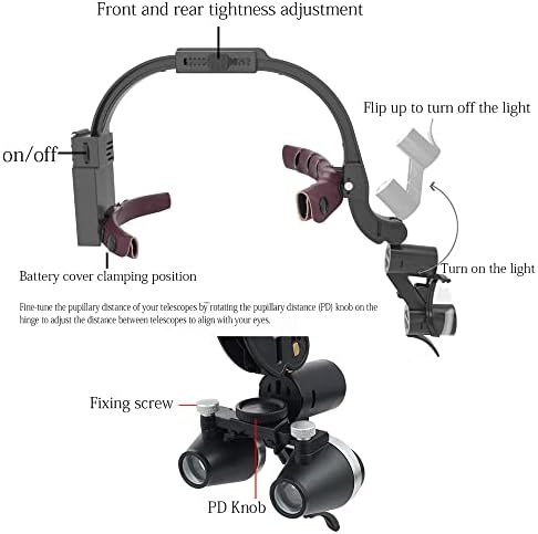 - Lightweight batteries and Comfortable Headband design, easy and comfortable to wear. Quick of battery replacement, brightness adjustable, used with magnifiers.