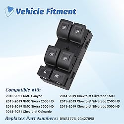 - AiYiGu Window Switch Power Control Button Compatible with 2014 2015 2016 2017 2018 2019 2020 2021 Chevy Silverado 1500, Chevrolet Silverado & GMC Sierra 2500 HD 3500 HD, Colorado & Canyon, Replace OEM 23427098 DWS1778 12 Pins