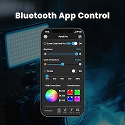 MILLIONS OF COLOR OPTIONS: Unleash your creativity with unlimited RGB color options, crafting the perfect color camera light for any creative need. This color LED panel is compatible with Nikon, Sony, Canon, Fuji, and Panasonic DSLR cameras, providing a spectrum of possibilities for your visual expressions. ADJUSTABLE BRIGHTNESS & TEMPERATURE: Fine-tune your lighting with a color temperature range from 2700K to 7500K and adjustable brightness from 1% to 100%. Enjoy enhanced control, finding the perfect light to maximize your creativity in any situation! INCLUDES DSLR MOUNT & SNAP-ON DIFFUSER: Complete your setup with the included cold shoe mount and versatile 3 1/4"" 20 mounting options, featuring a built-in frosted lens. Perfect for photo lighting or as an on-the-go portable LED light, providing flexibility and convenience in every shot. WIRELESS CONTROL VIA BLUETOOTH: Harness the ultimate power of the Panel Pro with wireless control through the Lume Cube App on your phone. Effortlessly adjust settings for photography or use it as a versatile LED video light. Experience seamless control and unleash your creativity with ease. LONG BATTERY LIFE: The rechargeable battery ensures 4+ hours of continuous power at 50% brightness, making it the perfect photography accessory for creators seeking studio-quality light to master their craft. Illuminate your creative journey without interruption.