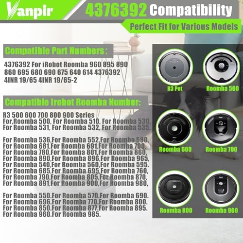 3300mAh Upgrade Replacement Battery for iRobot Roomba 500 600 700 800 900 Series 4376392 battery Compatible with Roomba 960 981 970 965 801 805 850 860 890 891 895 695 690 685 680 670 665 652 1800LI