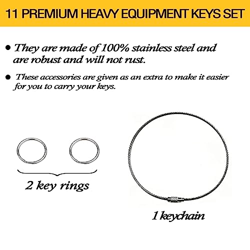 11 Heavy Equipment Keys Set, Construction Master Machine Keys Set for Cat, JD, Case, Komatsu, Hyster, Kubota, JCB, Bobcat, Daewoo, JLG, Toyota, Master Ignition Key for Workers and Opeartors
