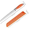 - 2. Mango Ergonómico de Plástico y Caucho: La característica destacada de nuestro cuchillo cortador de pan es su mango de color naranja vibrante, diseñado meticulosamente para la comodidad y la estética. El color audaz no solo añade un toque de vitalidad a su cocina, sino que también garantiza un agarre firme y cómodo, minimizando el cansancio durante el uso prolongado. El mango ergonómico de este diseño de cuchillo serrado le permite mantener el control total, permitiendo cortes sin problemas sin comprometer la seguridad.