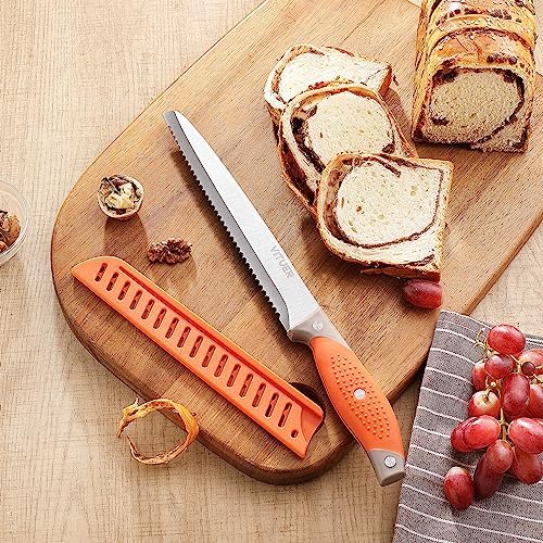 Cuchillo para Pan con Cubierta, Cuchillo Serrado de 8 Pulgadas para Pan Casero, Cortapanadiza Ideal para Cortar Pan Casero, Bagels, Pastel (Cuchilla de 8 Pulgadas con Mango de 5 Pulgadas)