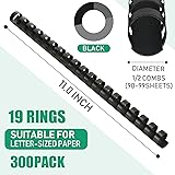 Maitys 300 Pcs Plastic Binding Combs Bulk 19 Ring Comb Spines Letter Size Spiral Binding for Notebook Calendar Picture(1/2 Inch,Black)