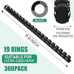 Reliable Material: our plastic comb binding rings are made of reliable plastic material, safe and sturdy, with smooth surface, not easy to break or fade, their fine workmanship will serve you for a long time; And they can keep the paper from coming off easily Package Information: you will get 300 pieces of plastic binding combs, each is approx. 1/2 inch; Sufficient quantity will meet your using needs, and you can share them with your family Easy to Use: our plastic spiral binding is light and portable, designed in 19 rings, you can also cut it to the size you need according to your needs, and it is suitable for most people to use Size Details: our black comb binding spines have proper size, approx. 1/2 inch, can hold up to 90 sheets of paper, can meet your different needs and give you good using experience Widely Applicable: you can use our spiral comb bindings on various occasions, they are suitable for teachers, students, nurses, doctors, etc., to bind your notebooks, calendars, pictures, albums, documents and others