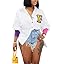 kaimimei Shirt Dress for Women Sexy-Color Block Letter Embroidery Button Down Long Sleeve Ribbed Cuff Club Blouse Mini Dress