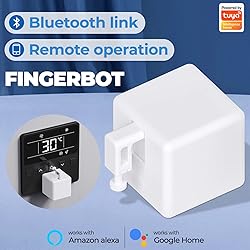 EASILY CONTROL YOUR TRADITIONAL APPLIANCES: Fingerbot comes with 5 Tool arms, Compatible with various buttons and switches including rocker switches, toggle switches and more.Support click and press modes; Support both forward and reverse operation modes. The amplitude can be adjusted, support two modes of rising and falling. Smartly Control Your Traditional Appliances such as garage door, lamp switch, fans, doorbell or a coffee maker WIRELESS APP CONTROL & TIMER: Easy App operation within Bluetooth range. You can control fingerbot controller directly via Bluetooth with Smart life/Tuya App. You can also set up the smart finger robot to turn all functions on and off according to your own schedule. Turn lights or home appliances on/off automatically even when you’re away. EVEN BETTER WITH A Tuya Bluetooh Hub: Add a Tuya Bluetooth gateway (Not included) to make the smart switches that work with alexa and Google Assistant, you can control smart button remotely from anywhere and enable voice control. EASY INSTALLATION: Tape the smart button right next to a rocker switch or button with a 3M sticker in 5 seconds. No swapping, no tools are required. ENGERY SAVING: The newly upgraded second-generation finger robot is powered by a replaceable battery(battery include), working time can last for more than one year without to replace the battery.