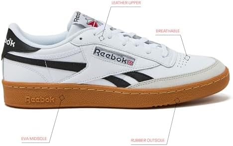 Reebok Club C Revenge Vintage Sneakers for Men - Casual Tennis Mens Shoes, White/Black/Gum, 7.5