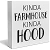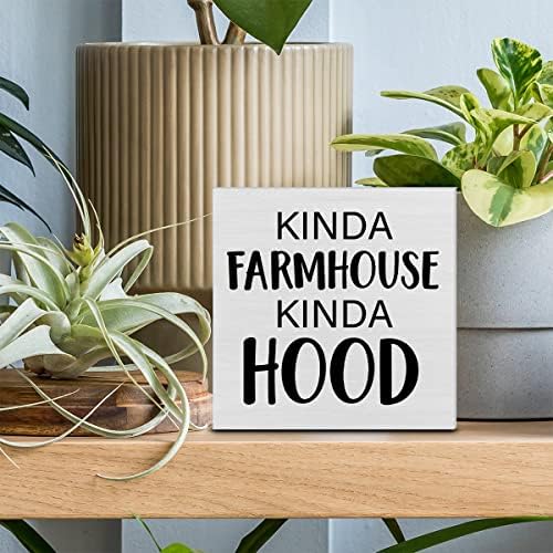 Home Decorative Wooden Box Sign Kinda Farmhouse Kinda Hood Wood Block Plaque Decor Modern Shelf or Wall Display for Living Room Bedroom