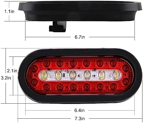 - This listing features 4 Pieces 6.4 inch Dual Red Oval Led Stop Turn Tail Lights with White Back-Up Lights 22 LED Diodes, convenient and efficient way to get a red stop/turn/tail and clear backup light in a single fixture. Rubber Grommets and standard three-prong offset wire pigtails are included;